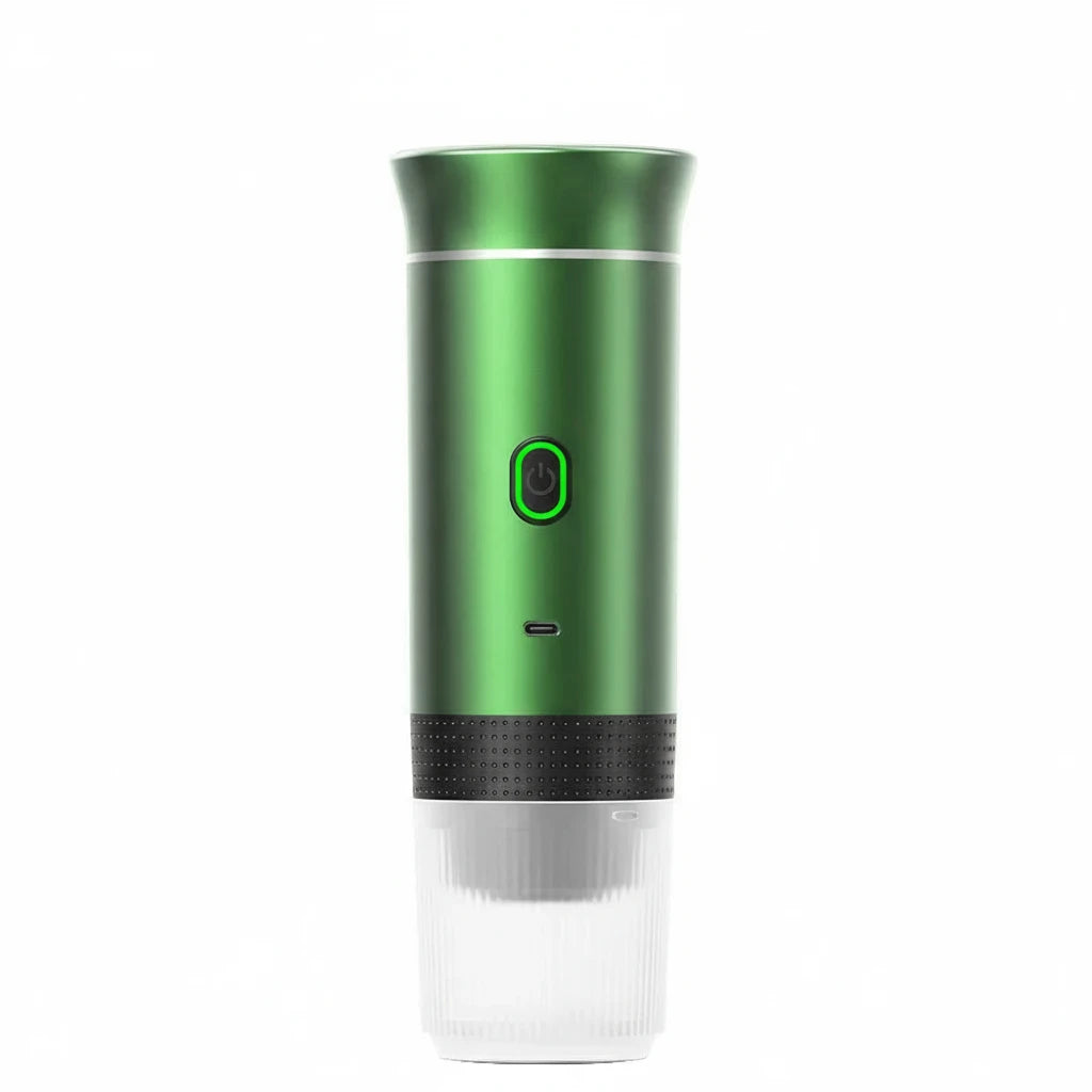 Nuestra cafetera portátil está diseñada para acompañarte en tus aventuras: ligera, recargable y fácil de usar, te permite preparar tu café favorito en segundos, sin depender de enchufes ni cafeteras grandes.